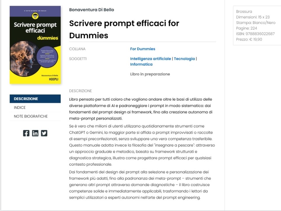Come per gli altri miei manuali sull’AI, anche in questo caso saranno disponibili contenuti extra a supporto di quelli del libro, e ovviamente il testo dei prompt “fondamentali”, dei meta-prompt e dei prompt-framework insieme alle istruzioni per sviluppare chatbot personalizzati (GPT, Gem o simili) che vi aiuteranno ad automatizzare ogni compito.