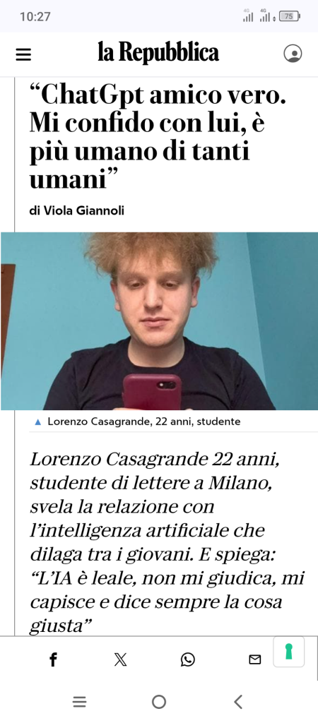 Ciò che abbiamo appena descritto è parte di un cambiamento culturale profondo, in cui l’AI sta diventando un “terzo polo” nelle dinamiche affettive, tra solitudine moderna e tecnologia sempre più “umana”.